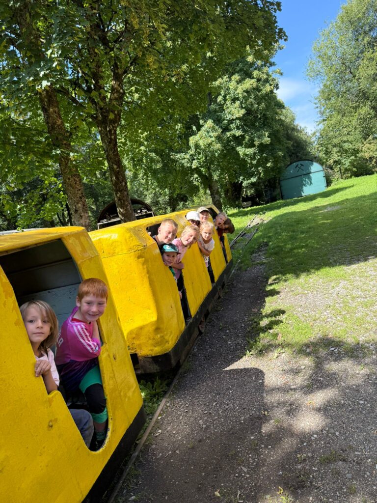 Ein besonderes Highlight der Ferienbetreuung war der Ausflug zum Ottiliae-Schacht in Clausthal-Zellerfeld. Bei strahlendem Sommerwetter machten sich die Kinder auf den Weg, um ein Stück Harzer Bergbaugeschichte hautnah zu erleben. Schon die Fahrt mit der kleinen Grubenbahn sorgte für große Begeisterung – neugierig blickten die Mädchen und Jungen aus den Waggons und ließen sich von der besonderen Atmosphäre des historischen Geländes faszinieren.