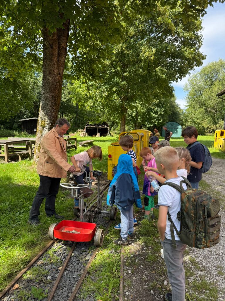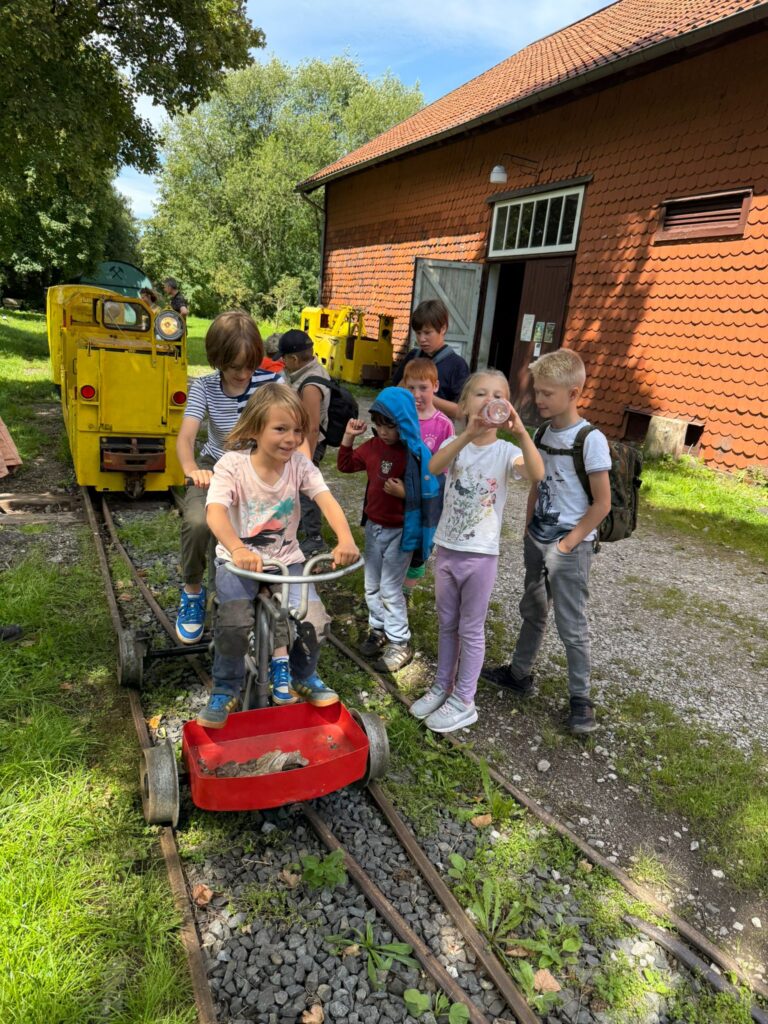 Vor Ort erfuhren die Kinder Spannendes über die Arbeit unter Tage, die Bedeutung des Bergbaus für die Region und die technischen Anlagen rund um den Schacht. Spielerisch und anschaulich wurde erklärt, wie früher Erz gefördert wurde und welche Aufgaben die Bergleute hatten. Dabei blieb genügend Zeit, Fragen zu stellen, Eindrücke zu sammeln und das Gelände zu erkunden.