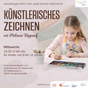 Der Verein Bürger helfen Bürgern Clausthal-Zellerfeld e.V. ist Organisator des Angebots „Künstlerisches Zeichnen“ und lädt Kinder und Jugendliche im Alter von acht bis 14 Jahren zu einem regelmäßigen Kreativkurs ein. Jeden Mittwoch von 15.30 bis 17 Uhr haben die Teilnehmenden die Möglichkeit, gemeinsam mit Melanie Hippauf ihre zeichnerischen Fähigkeiten zu entdecken und weiterzuentwickeln.