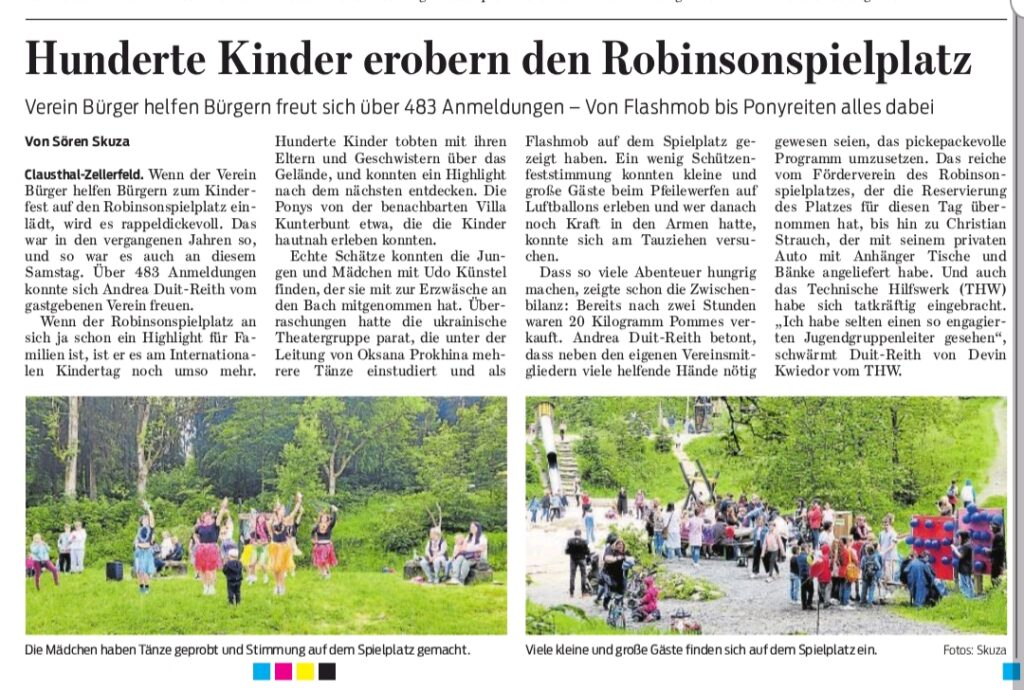 Beim Kinderfest auf dem Robinsonspielplatz in Clausthal-Zellerfeld herrschte großes Treiben. Der Verein „Bürger helfen Bürgern“ konnte sich über insgesamt 483 Anmeldungen freuen. Viele Kinder kamen gemeinsam mit ihren Eltern und Geschwistern, um einen erlebnisreichen Tag auf dem Spielplatz zu verbringen.